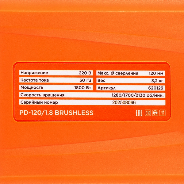 Цена и технические характеристики бесщеточной дрели для алмазного сверления ProfiDiam PD-120/1.8 Brushless: