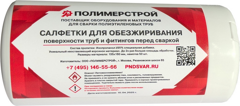 Преимущества салфеток для обезжиривания ПЭ труб и фитингов перед сваркой Gas Fusion, 50 шт.: